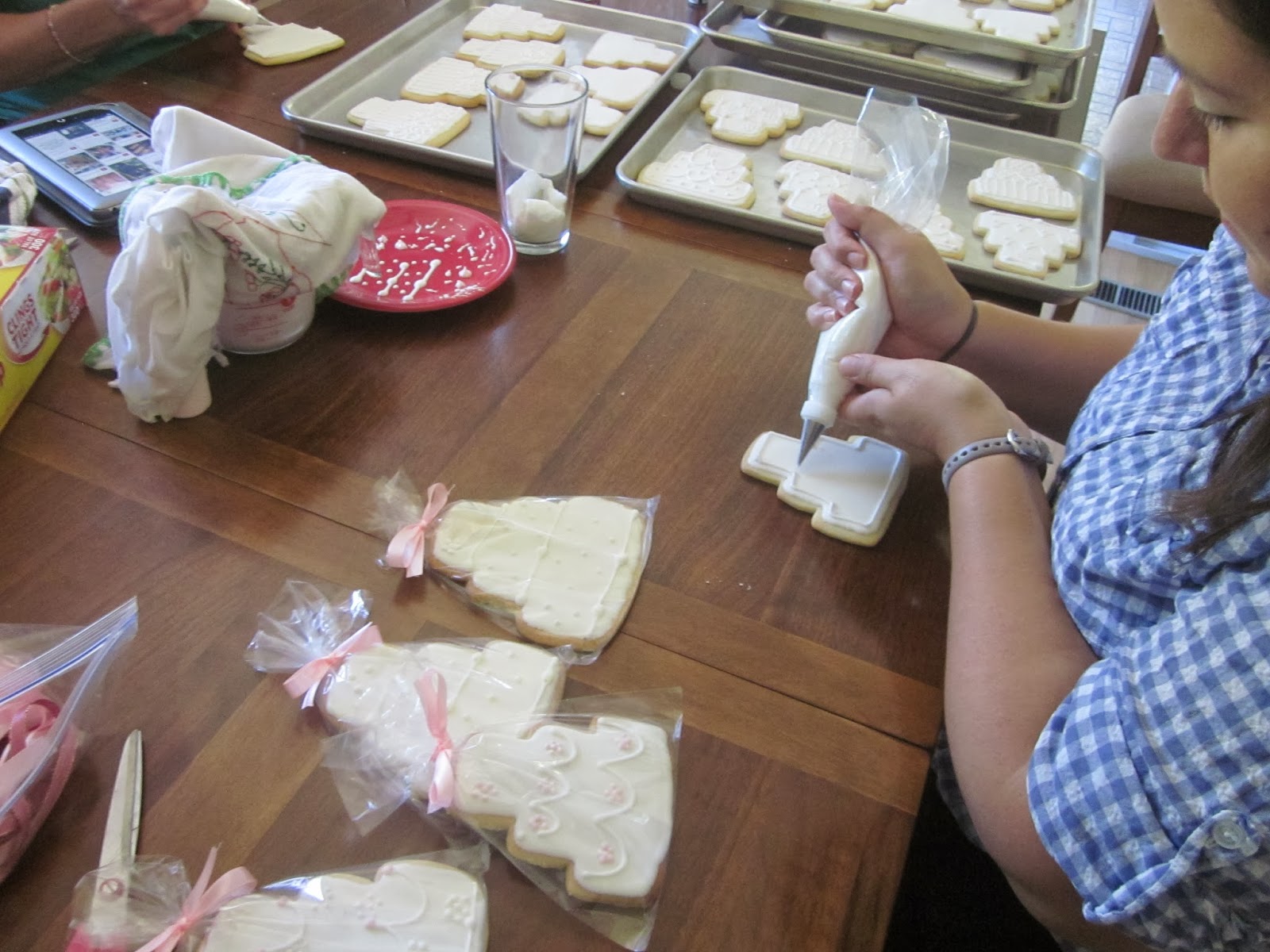 | My daughter Stephanie and Lisa frosting the cookies. |